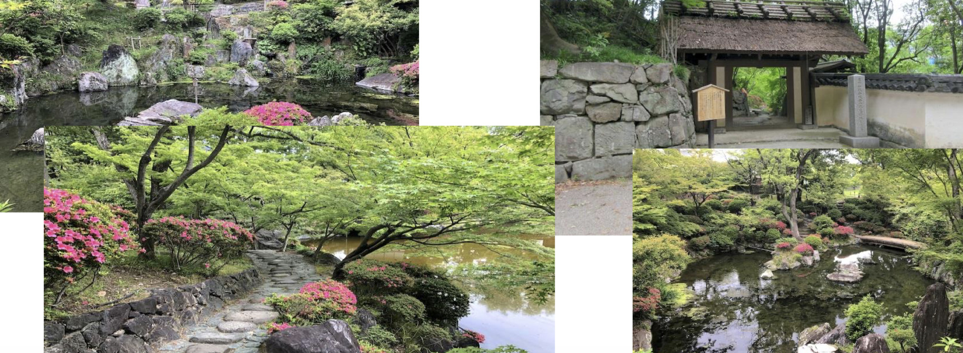 庭園内の上段部には、かつて存在していた茶室の“水月軒”(すいげつけん)と“聴松閣”(ちょうしょうかく)、そして“御数寄屋”(おすきや)を連想させます。