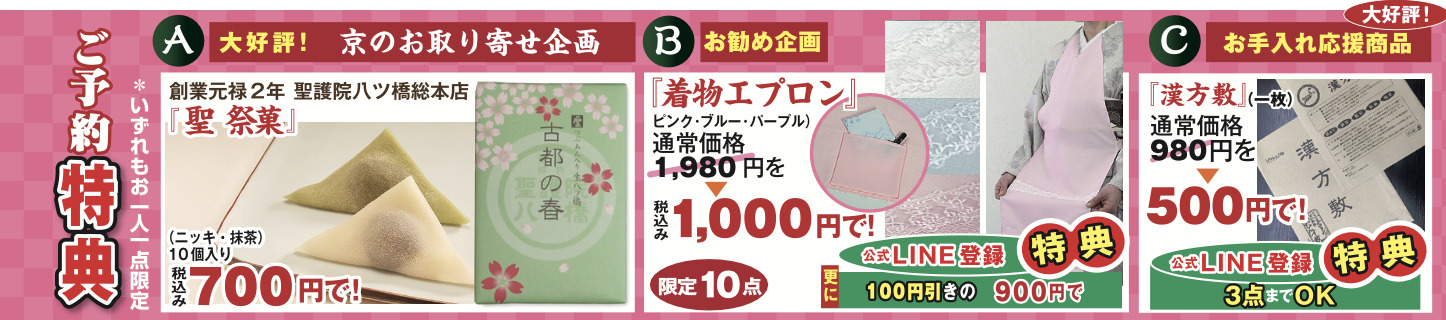- 洗い張り:通常価格の20%OFF(通常価格12,100円~)