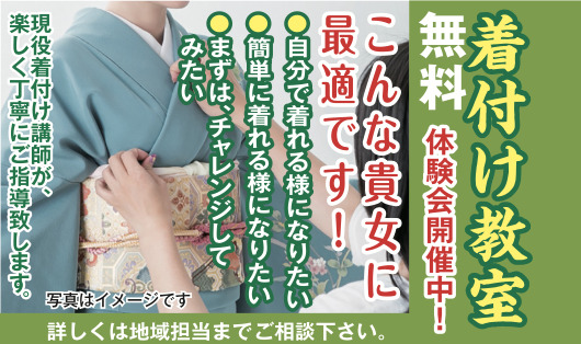 現役着付け講師による無料の着付け教室の見学会を開催しています。