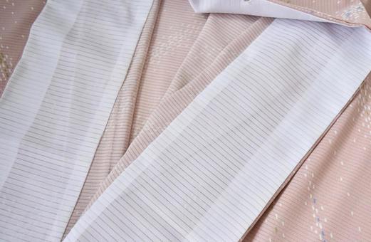 胴裏は温度調節の役割が大きく、4〜5月用の着物では胴裏を付けない「胴抜き」仕立てで袷を作ることもあります。