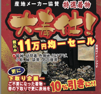 産地メーカー協賛特選着物大奉仕税込み11万円均一セール