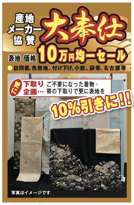 産地メーカーさんとの協力のもと、10万円均一セールも行います。