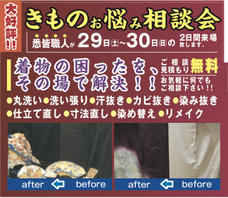 10/29と10/30限定で着物のメンテナンスの専門である悉皆職人の方が来場します!