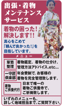 その他、着物の整理や供養などメンテナンスも行なっておりますので、お気軽にお越しくださいね!