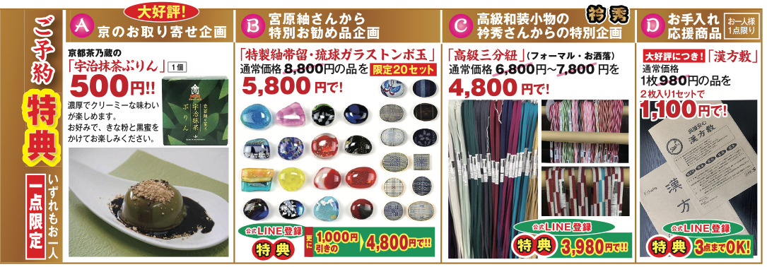 また、振袖のご購入・ママ振り目的でのご来場予約を事前にいただき、当日親子でご来場いただいたお客様へは特典がございます!