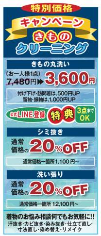 シミ抜きや洗い張りも通常価格から20%OFFの大特価!