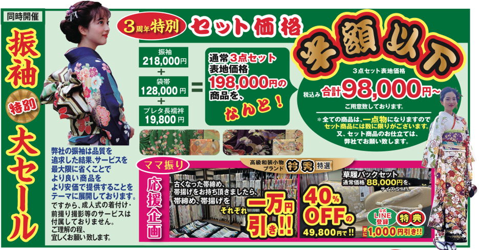 3周年特別企画といたしまして、振袖特別大セールを開催いたします!