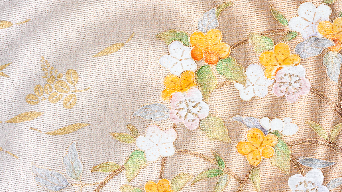 自然文様や有職文様などの雅やかなデザイン、はんなりとした美しさ、刺繍や箔をあしらった豪華さも特徴です。
